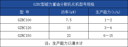 GZRC型磁力重油分散乳化机是专用于处理重油、渣油、沥青及类似物料的乳化粉碎设备。该机的高剪切线速度和高频机械能的切割、挤压、震荡,使上述物料中的悬浮物、颗粒物、胶质和水分得到分散、乳化和粉碎,使之成为细化均匀稳定的燃油。